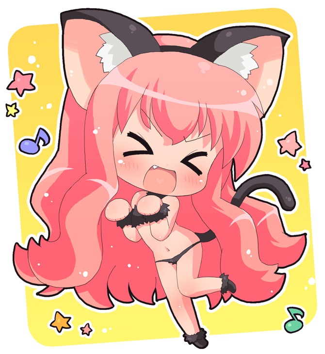 :d00s1boy1girlanimal earsbracat earscat tailchibiclosed eyesfangfemale focusflat chestlingerielong hairnavelopen mouthpantiespink hairsmilesolostomachtailunderwearunderwear onlyvery long hairxd