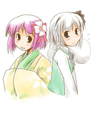 sanshita, kamiizumi yasuna, kurusu tomari, osaragi hazumu, kashimashi, 00s, 3girls, arm hug, armcling, blush, breasts, girl sandwich, grabbing another's breast, groping, multiple girls, sandwiched, yuri