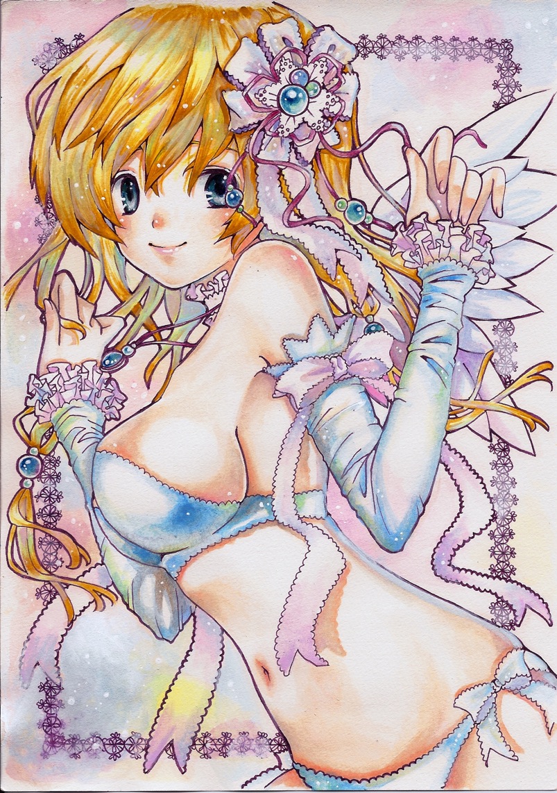 torii sumi, izayoi sakuya, remilia scarlet, touhou, unfinished, 2girls, apron, ascot, bat wings, blue dress, blue eyes, blue hair, bow, braid, child, dress, female focus, flower, frilled shirt collar, frilled sleeves, frills, green bow, hat, long sleeves, maid, maid apron, maid headdress, mob cap, multiple girls, own hands together, pink dress, pink hat, red ascot, red bow, red eyes, red flower, red ribbon, red rose, ribbon, rose, sash, shirt bow, short hair, smile, twin braids, white hair, wings