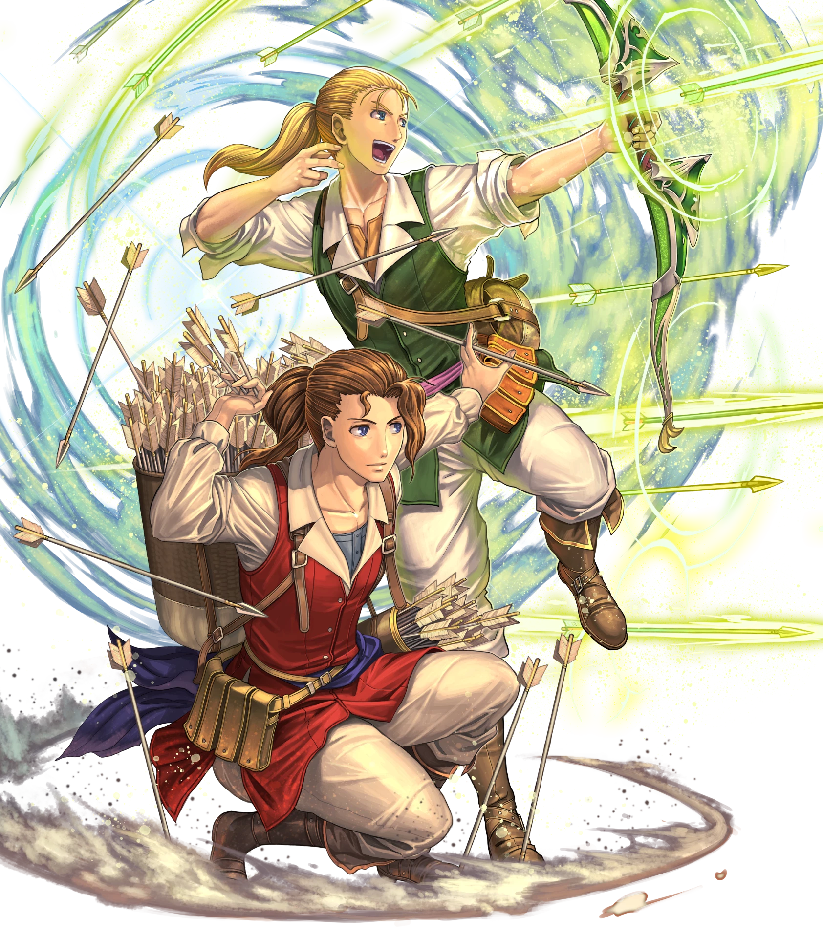 2boysarrow (projectile)bagblonde hairblue eyesbootsbow (weapon)brothersbrown bootsbrown hairdaniel (fire emblem)full bodyholdingholding arrowholding bow (weapon)holding weaponjorge (fire emblem)long hairmale focusmultiple boysopen mouthponytailquiversashshoulder bagsiblingssimple backgroundsleeves rolled upstandingtransparent backgroundwaist sashweapon