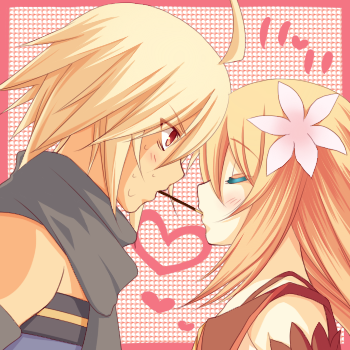 itini-sanshi, 2channel, commentary request, highres, translation request, 2boys, 2channel (/livejupiter/), aile-kun, bar censor, blue eyes, blue hair, blush, censored, crossdressing, crossdressing (mtf), dress, frilled hairband, frills, grey dress, grey hairband, hairband, looking at penis, male focus, multiple boys, open mouth, penis, penis awe, pink background, short hair, solo focus, trap, upper body, yaoi