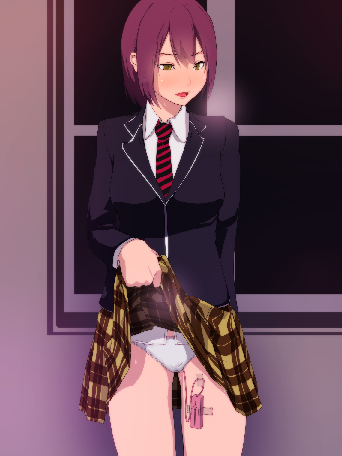 blushfemaleFlag for Deletionpantiespurple hairschool uniformshort hairskirtskirt liftsolounderwearvibratorvibrator under clothesvibrator under pantiesyellow eyes