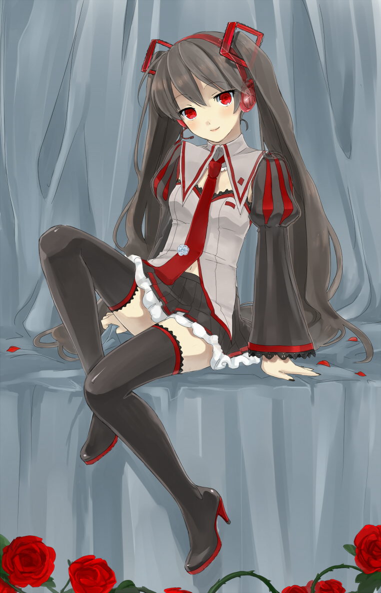 komeo, tenkuu sphere, original, bad id, bad pixiv id, belt, black hair, boots, brown hair, fading, katana, legs, long hair, navel, pantyhose, red eyes, school uniform, serafuku, sheath, sheathed, skirt, solo, sword, weapon, wind