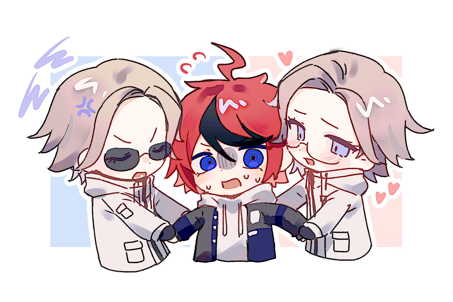 3boysahogeanger veinangryblack glovesblack streaksblue eyesblue jacketblushchibichibi onlyclone haremcropped torsodual personafacing anotherflying sweatdropsglassesglovesgrey hairgrey jacketgryzohoodhoodiejacketjacket over hoodielooking at viewerloving auramale focusmulticolored hairmulticolored jacketmultiple boysnervous sweatingopen clothesopen jacketoutlinepocketpurple eyesred hairringed eyesscaredshort hairstreaked hairsweattwo-tone jacketwhite hoodiewhite jacketwhite outlineyaoi