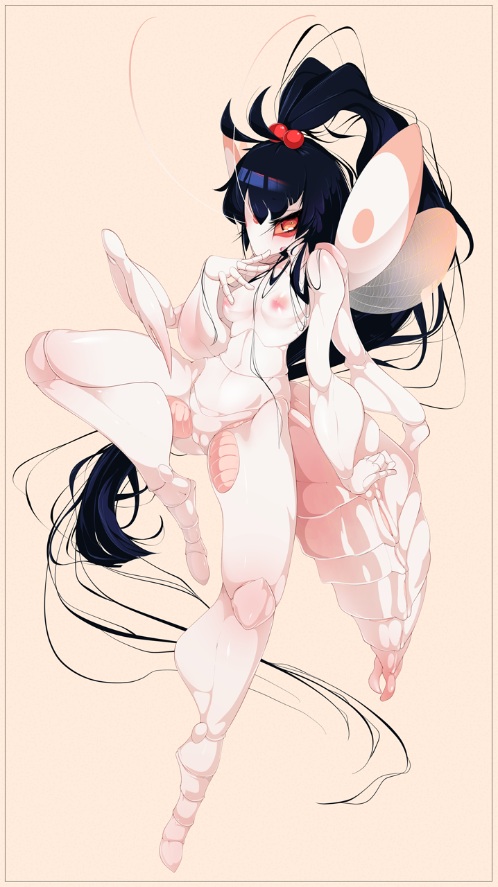 ocean (oveanman), viper (valorant), valorant, commentary, english commentary, highres, 1girl, ass, black hair, black nails, bottomless, breasts, clothes lift, eyeshadow, from behind, green eyes, hair behind ear, looking at viewer, looking back, makeup, medium breasts, nail polish, nipples, pink eyeshadow, pussy, ribbed sweater, short hair, simple background, solo, sweater, sweater lift, turtleneck, turtleneck sweater