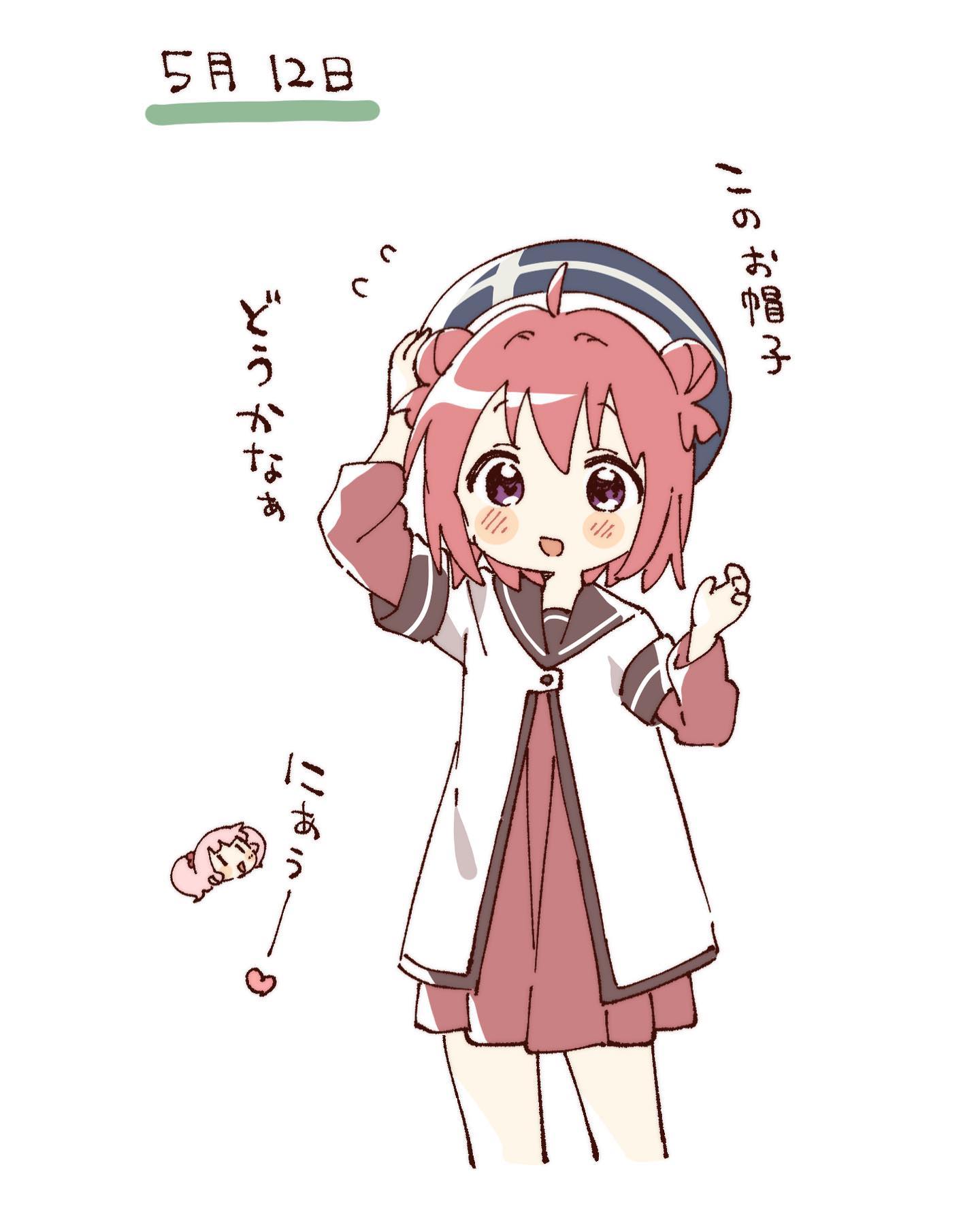 :d2girlsahogeblue hatblush stickersbrown sailor collarchibichibi insetcropped legsdouble bundresshair bunhatlayered sleeveslong sleevesmultiple girlsnanamori school uniformopen mouthpleated dresspurple eyesred dressred hairsailor collarschool uniformshirtshort hairshort over long sleevesshort sleevessimple backgroundsmilesolo focuswhite backgroundwhite shirtwinter uniform