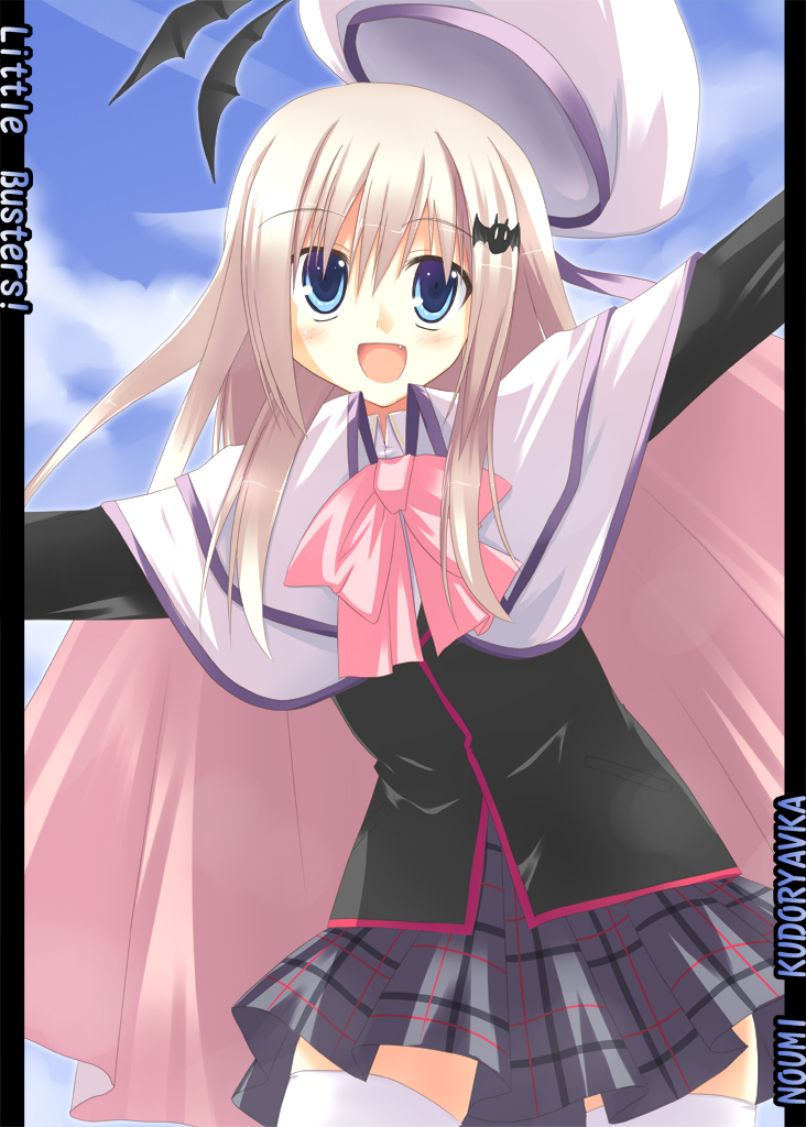:d1girlblue hairblushbowbowtiecontrappostocowboy shotfemale focusgrey skirtlong sleeveslooking at vieweropen mouthpink bowpink bowtieplaid clothesplaid skirtpleated skirtskirtsmilesolostandingtaremethighhighswaving