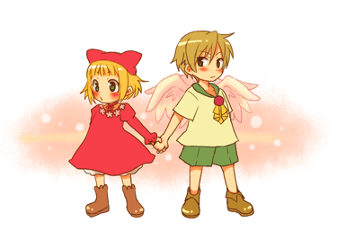 dir, cirno, hakurei reimu, embodiment of scarlet devil, touhou, bad id, bad pixiv id, 2girls, blue hair, female focus, japanese clothes, miko, multiple girls, ribbon, short hair, wings