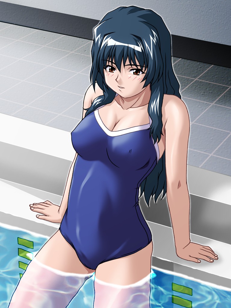00s1girlarm supportblue hairblue one-piece swimsuitblushbreastsbrown eyescausticscleavagecompetition school swimsuitcovered erect nipplesfemale focusfrom abovegreen hairhair between eyeshair intakeslong hairone-piece swimsuitparted lipspoolpoolsideschool swimsuitsoloswimsuitthighswadingwater