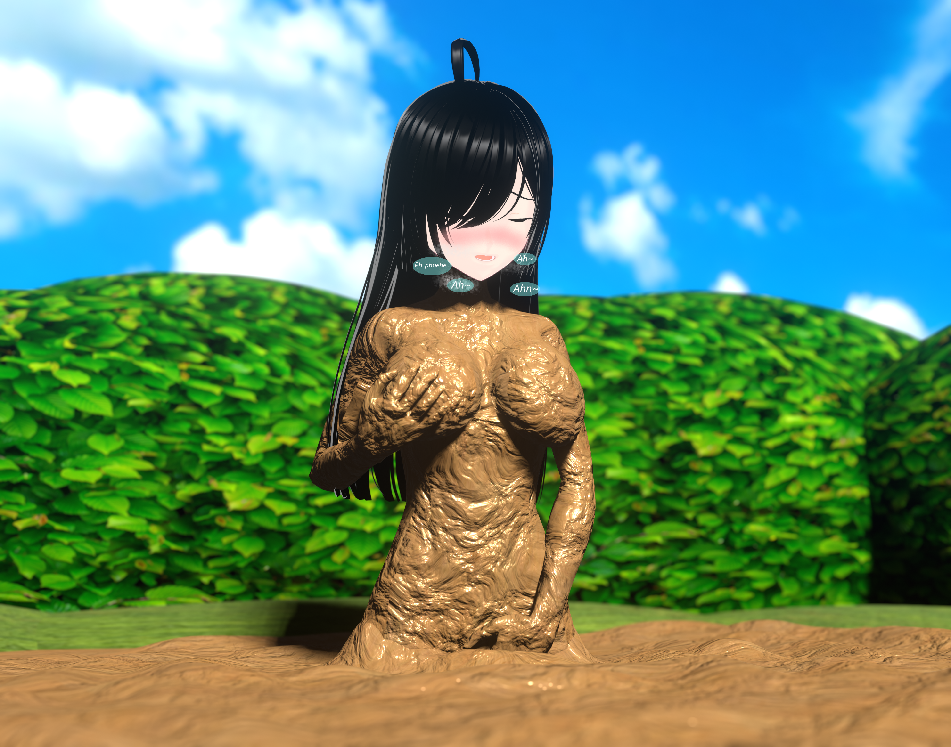 dime-san, columbina (genshin impact), sandrone (genshin impact), genshin impact, commentary request, highres, 2girls, bare shoulders, black hair, blue eyes, blue sky, blush, breasts, brown hair, cleavage, closed eyes, dress, eye mask, gradient hair, large breasts, long hair, looking at viewer, maid headdress, multicolored hair, multiple girls, partially shaded face, purple hair, sky, smile, two-tone hair, very long hair, white dress