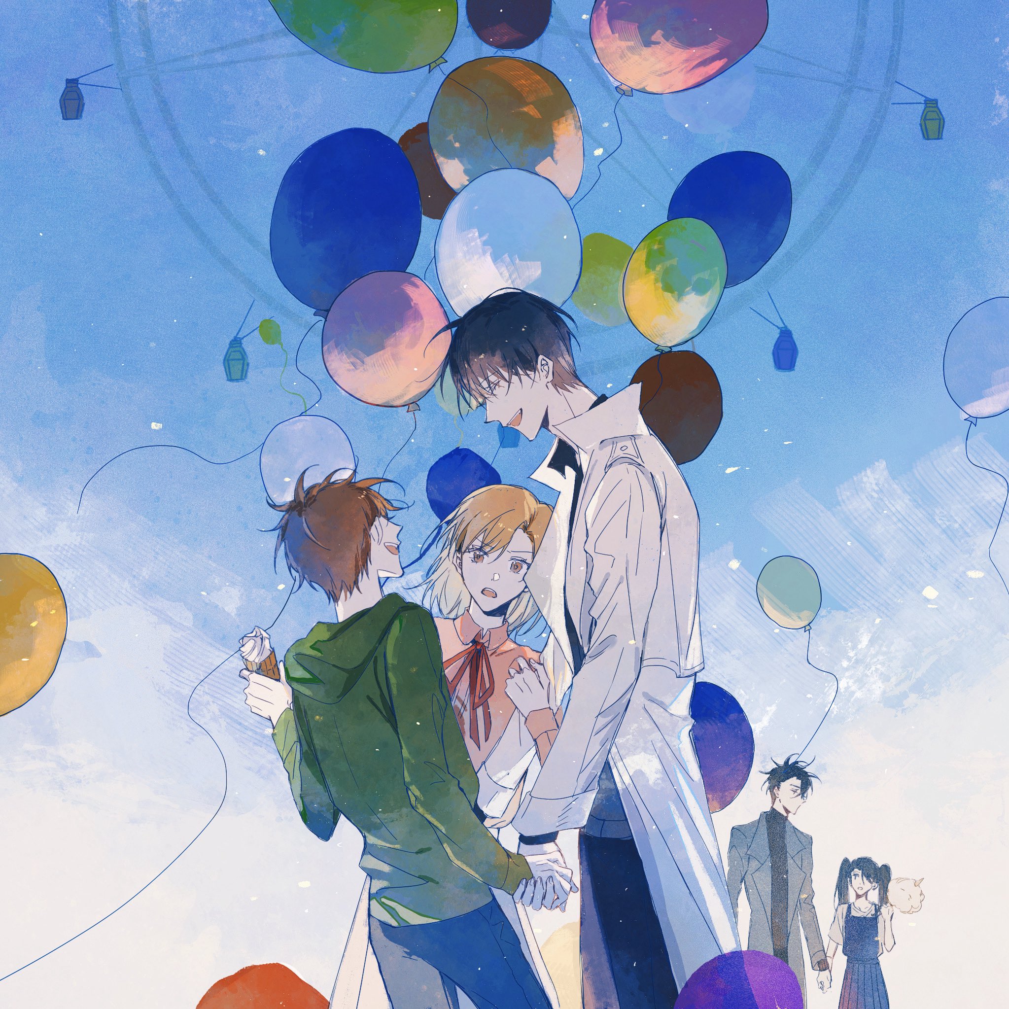 2girls3boysballoonblack coatblack dressblack hairblack shirtblonde hairbreathing742105brown haircoatcompassdressgreen hoodiegrinholdingholding handshoodhoodielaughinglight particleslooking at anothermultiple boysmultiple girlsneck ribbonparent and childpink dressribbonshirtshort hairshort twintailssiblingssmiletwintailswhite coat
