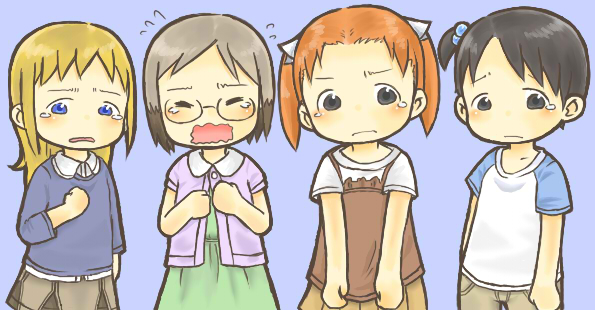 4girlsblack eyesblonde hairblue eyesbrown hairchildcryingglasseshair ribbonmultiple girlsorange hairribbonshort hairtearstwintails