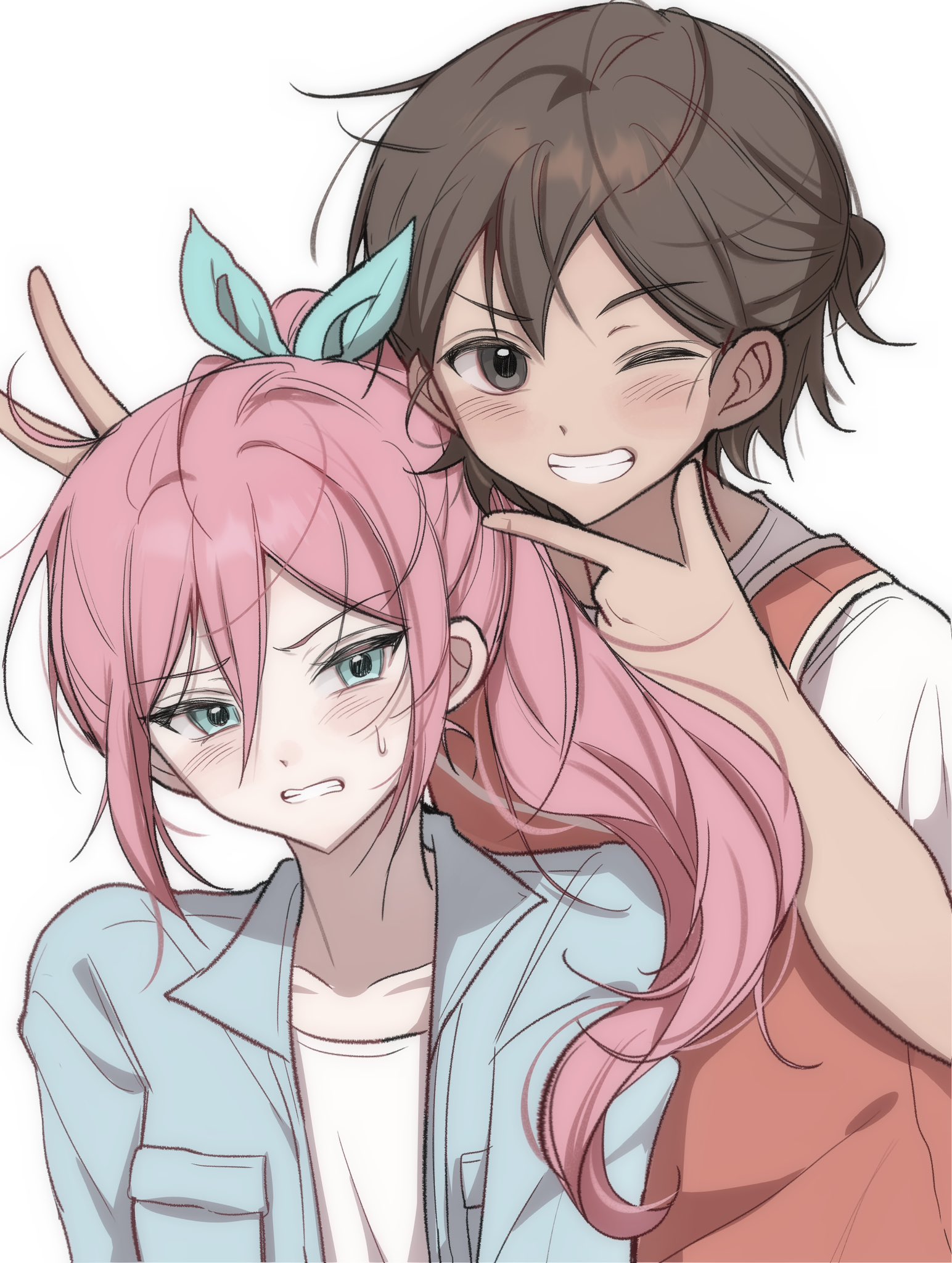 flandre scarlet, remilia scarlet, touhou, 2girls, ^^^, bat wings, female focus, hat, incest, kiss, mob cap, multiple girls, siblings, simple background, sisters, surprised, v-shaped eyebrows, white background, white hat, wings, yuri