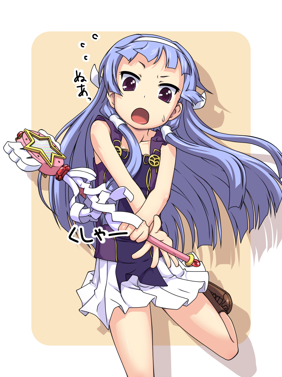 00s1girlblue hairblunt bangsfemale focushair tubeslong hairpleated skirtskirtsolosweatwandwhite skirt