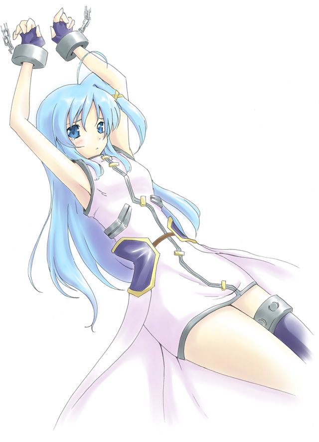 00s1girlahogeasymmetrical clothesasymmetrical legwearbdsmblue eyesblue hairblushbondageboundbound wristscuffsfemale focusfingerless glovesgloveshair ornamentlong hairmagical girlmatching hair/eyesrestrainedshackledshacklessingle thighhighsolothighhighsuneven legwearwaist capex hair ornament