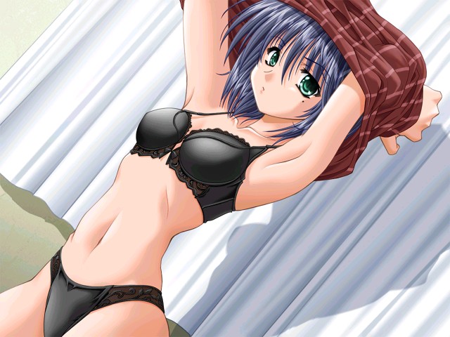 1girlblack pantiesblue hairbradutch anglefemale focusgreen eyeslingeriemolemole under eyepantiesshort hairsolounderwearunderwear onlyundressing