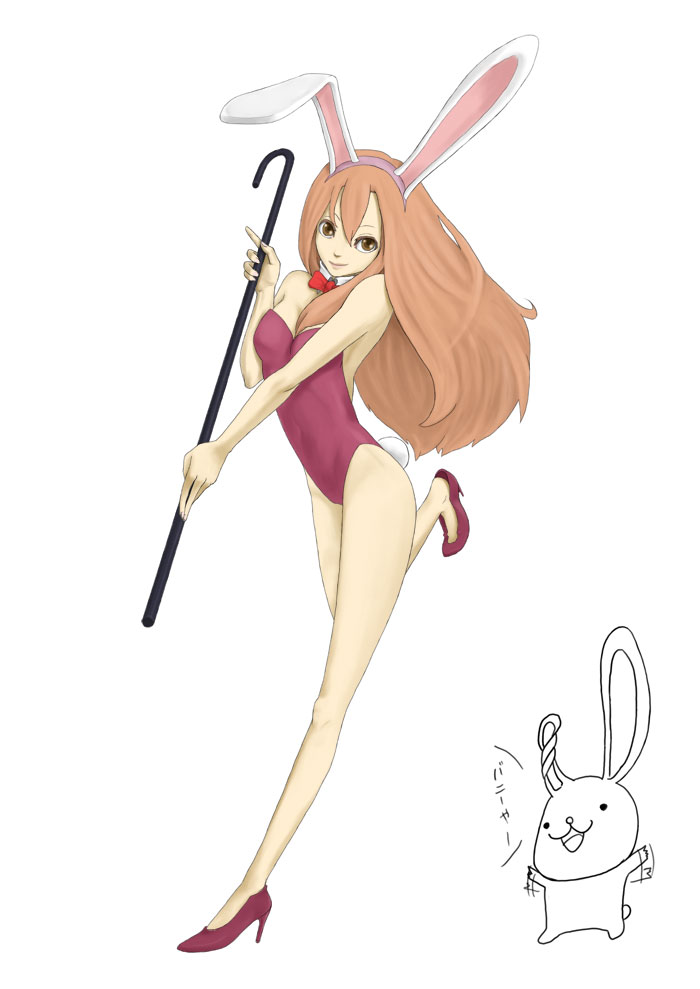 1girlanimal earsbare legsbrown eyesbrown haircanefake animal earsfemale focushigh heelslong hairplayboy bunnyrabbitrabbit earsshoessolo
