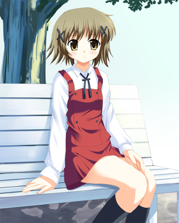 00s1girlbenchbrown hairfemale focusoutdoorsschool uniformshort hairsittingsoloyamabuki high school uniform