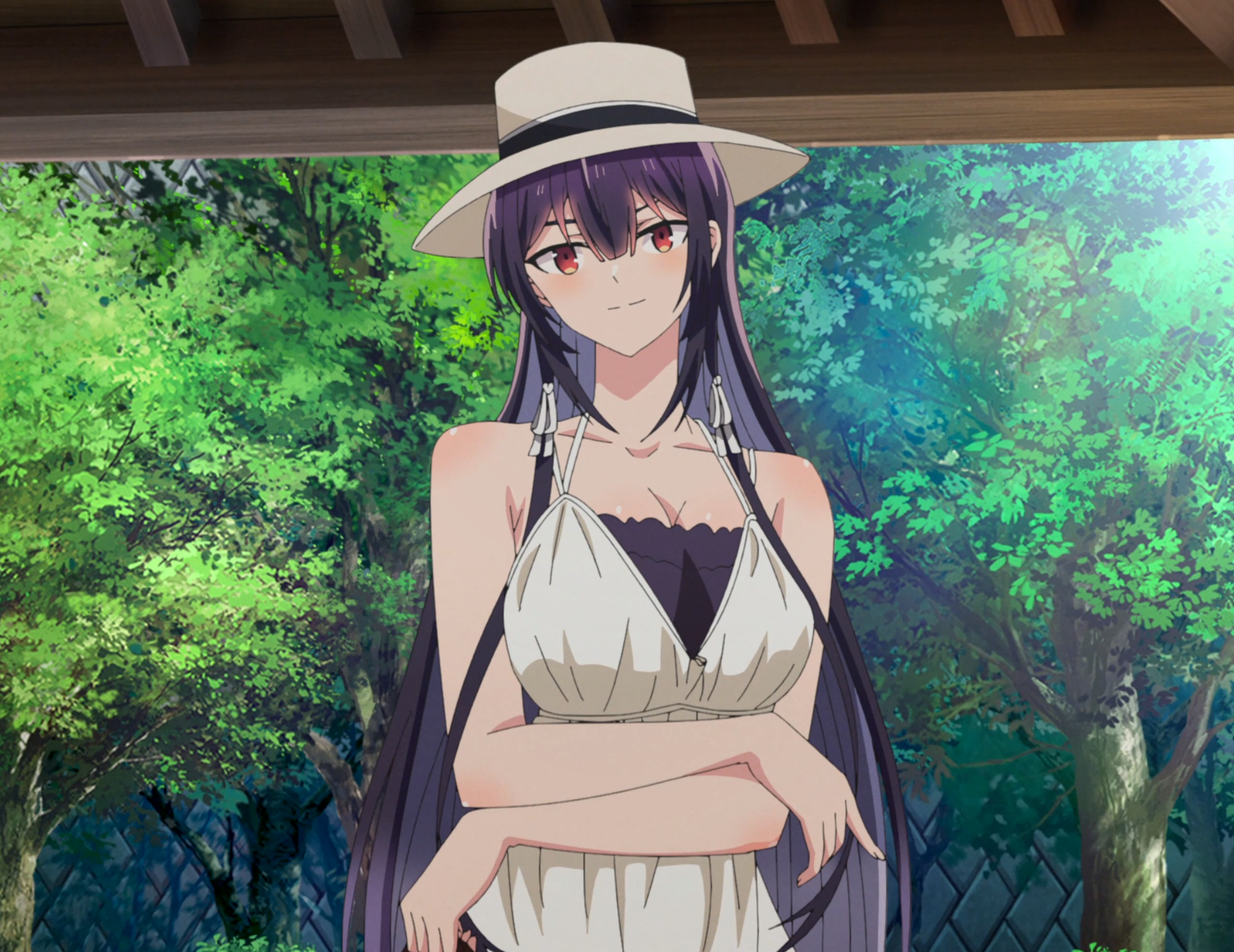 rankaku, shiina taki, yahata umiri, bang dream!, bang dream! it's mygo!!!!!, absurdres, chinese commentary, commentary request, highres, 2girls, black camisole, black hair, blue eyes, blue shirt, breasts, brown hair, camisole, cleavage, earrings, green jacket, half updo, jacket, jewelry, long hair, mole, mole under eye, multiple girls, ocean, open mouth, ponytail, purple eyes, shirt, single off shoulder, white jacket