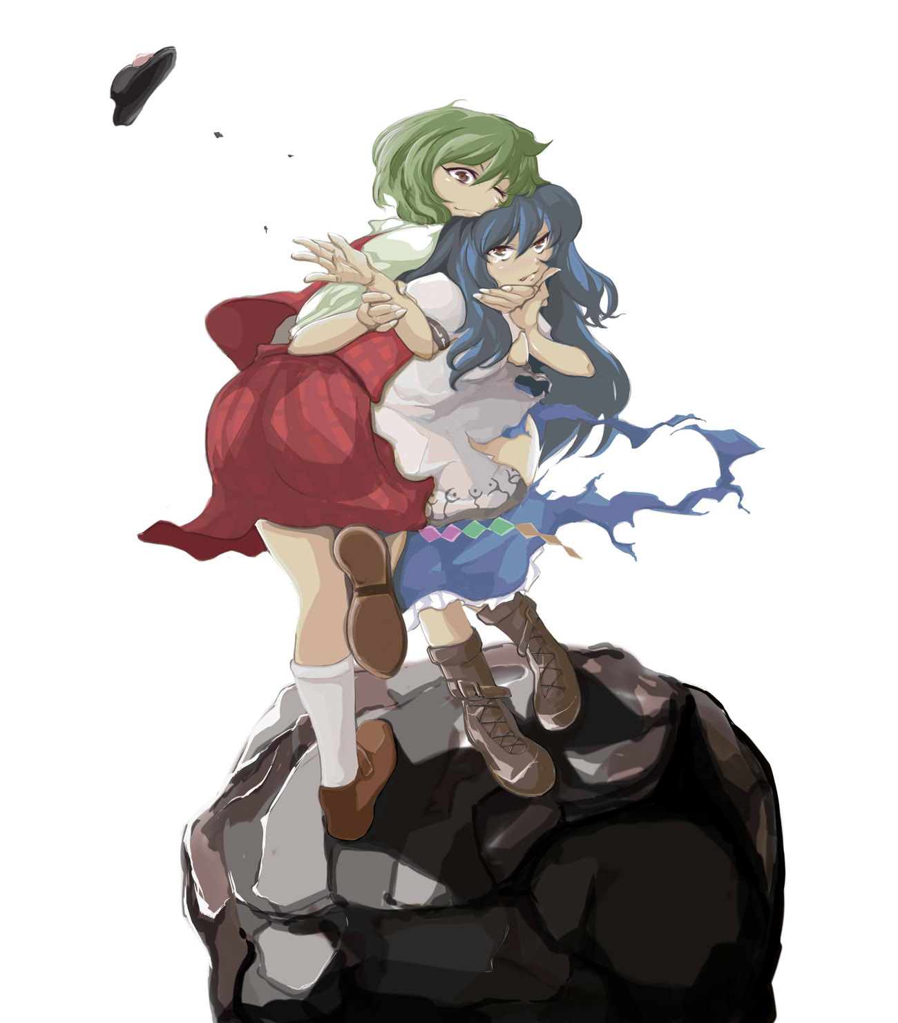 dairi, medicine melancholy, su-san, touhou, commentary request, large variant set, variant set, 1girl, alphes (style), bare arms, black shirt, blonde hair, bow, bowtie, bubble skirt, crossed legs, doll, full body, hair ribbon, interlocked fingers, own hands together, parody, puffy short sleeves, puffy sleeves, red bow, red bowtie, red ribbon, red shoes, red skirt, ribbon, shirt, shoes, short hair, short sleeves, skirt, socks, solo, standing, style parody, tachi-e, transparent background, watson cross, white socks