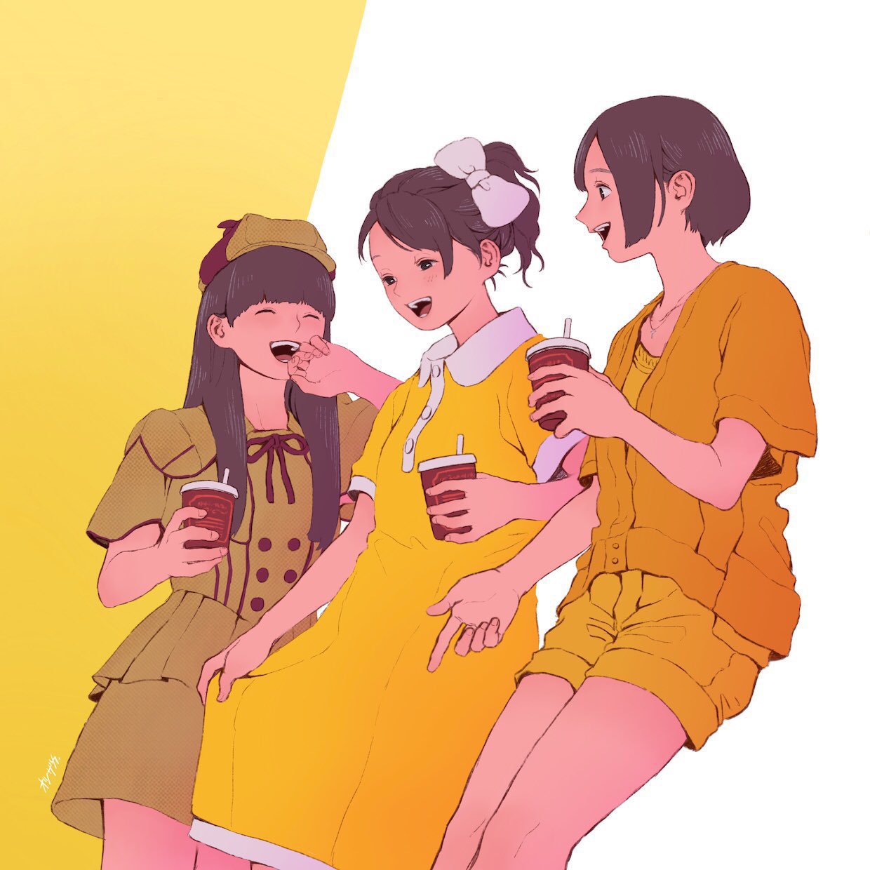 you2, original, 3girls, animal ears, barefoot, bed, breasts, camisole, cat ears, cat tail, cleavage, feet, frilled thigh strap, holding hands, multiple girls, panties, tail, thigh strap, underwear
