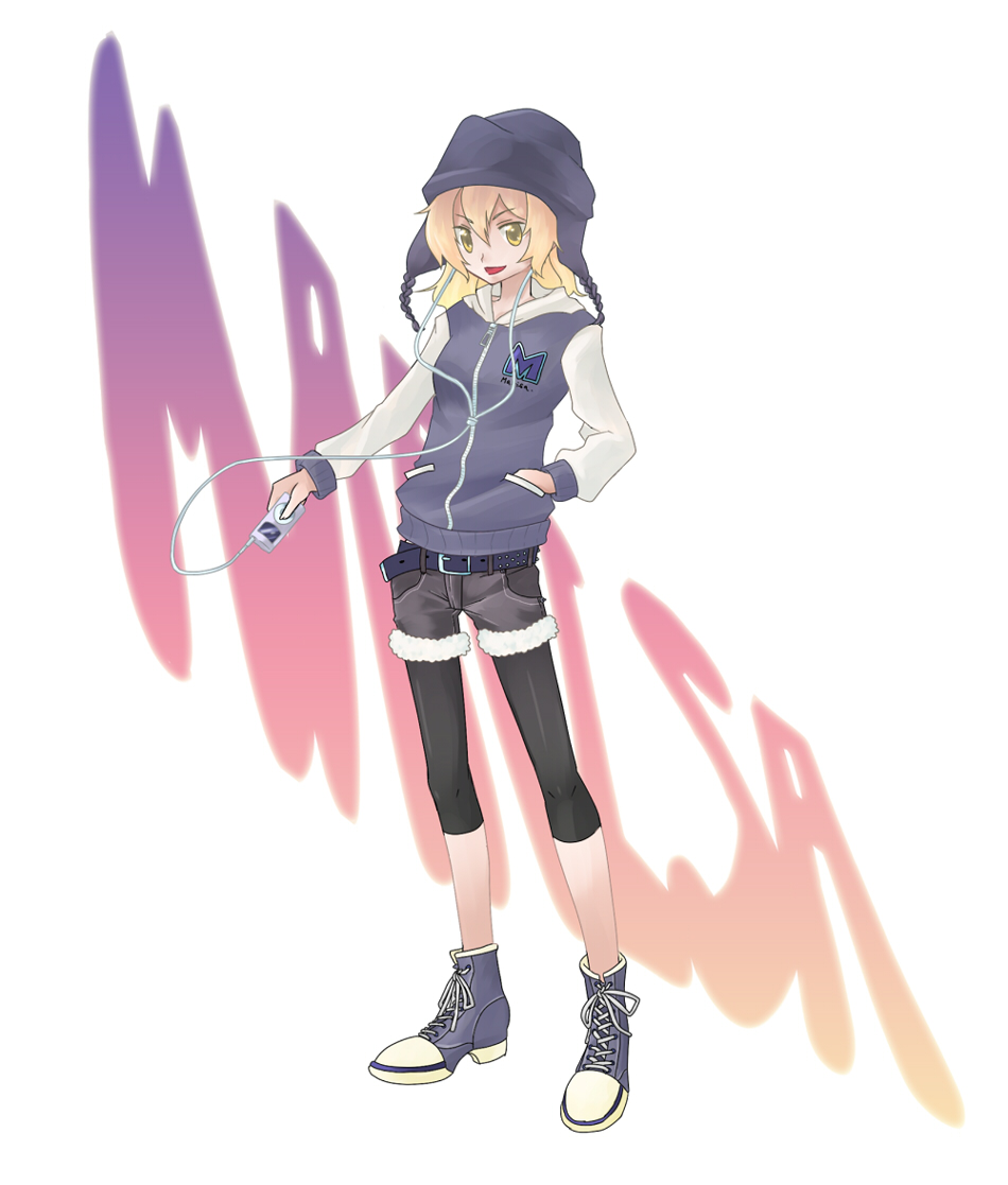 1girlankle bootsbeanieblonde hairbootscasualcontemporarydigital media playerfemale focusfull bodyhatipodsolowhite background