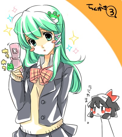 1boy2girlsalternate costumearms behind backblushcasualcellphonecontemporaryfemale focusmultiple girlsphoneschool uniformskirtwhite background