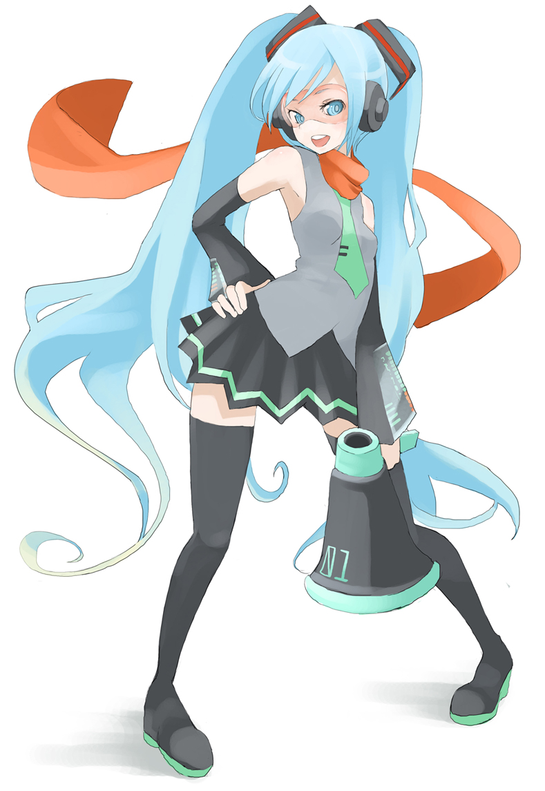 blue eyesblue hairdetached sleevesheadphoneslong hairmegaphonesolothighhighstwintailszettai ryouiki