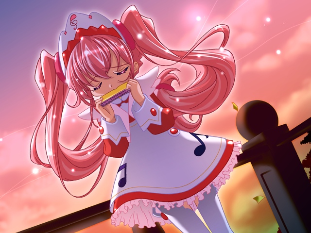 00schildclosed eyesdressdutch angleharmonicainstrumentlong hairmaidpantyhosepink hairskirtsolosunsettwintails