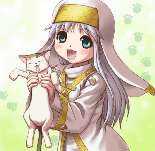 :d00s1girlanimalblushcalico (pattern)calico catcatclosed eyesfemale focusgreen eyeslong hairlong sleevesnunopen mouthpointy earssmilesolotaremeupper bodyveilvery long hair