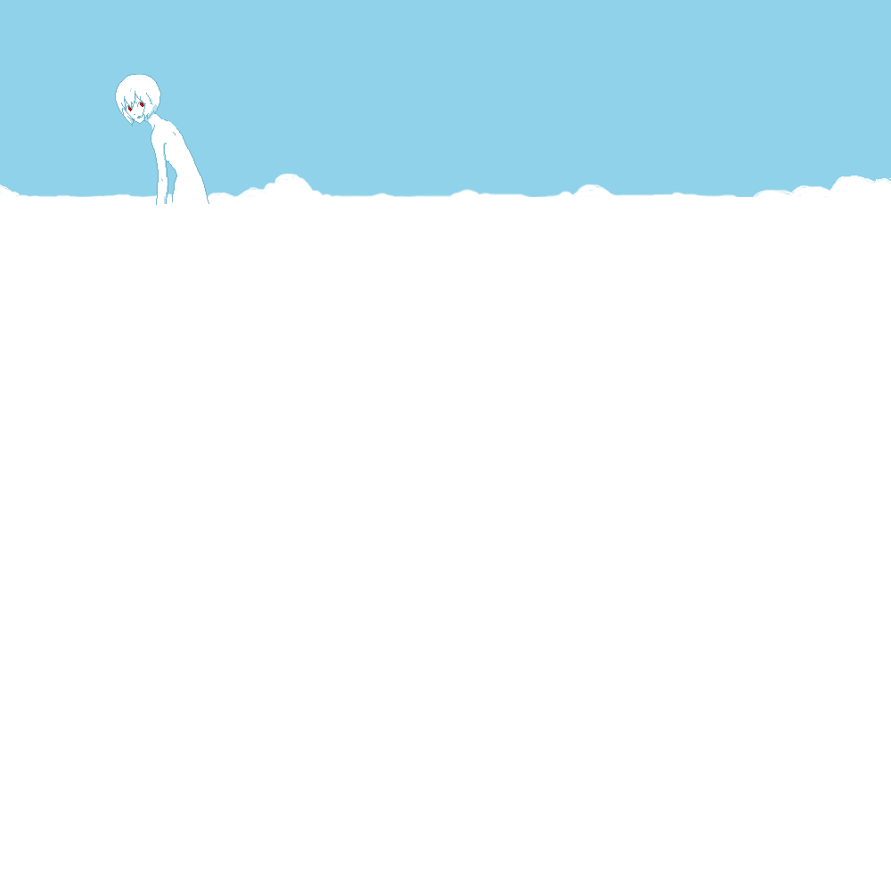 1990s (style)aqua themeblue themecloudmonochromenudeoekakipale skinred eyesretro artstyleshort hairskysolo