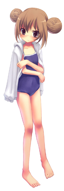 00s1girlbrown haircompetition school swimsuitdouble bunfemale focushair bunjacketjacket on shouldersone-piece swimsuitschool swimsuitsimple backgroundsoloswimsuitwhite background