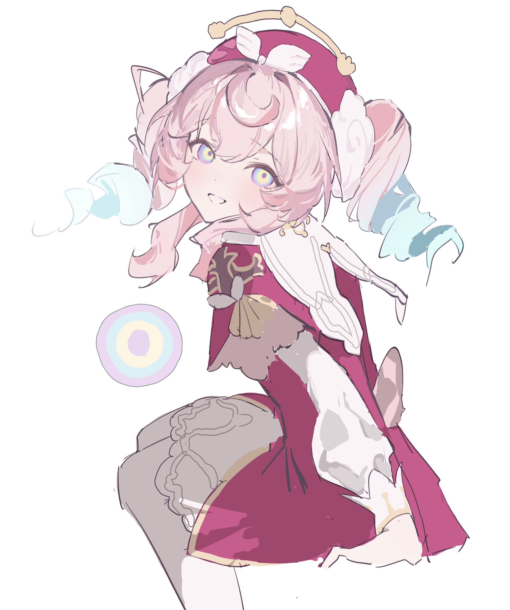1girlalternate eye coloraqua bowaqua bowtieaqua hairaquila (honkai: star rail)bowbowtiedodosaaedressdrill hairgradient hairhatlong hairlooking at viewermulticolored hairopen mouthpantyhosepink hairred dressred hatringed eyessmilesolotwin drillstwintailstwo-tone hairwhite pantyhose