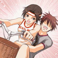 otoki raku, kirishima kano, potato (air), air (visual novel), 00s, 1girl, animal, animal on head, baby animal, blue hair, blush, bow, cloud, cross, dog, dutch angle, female focus, green eyes, on head, one eye closed, potato, puppy, ribbon, short hair, sky, solo, wrist ribbon, yellow ribbon