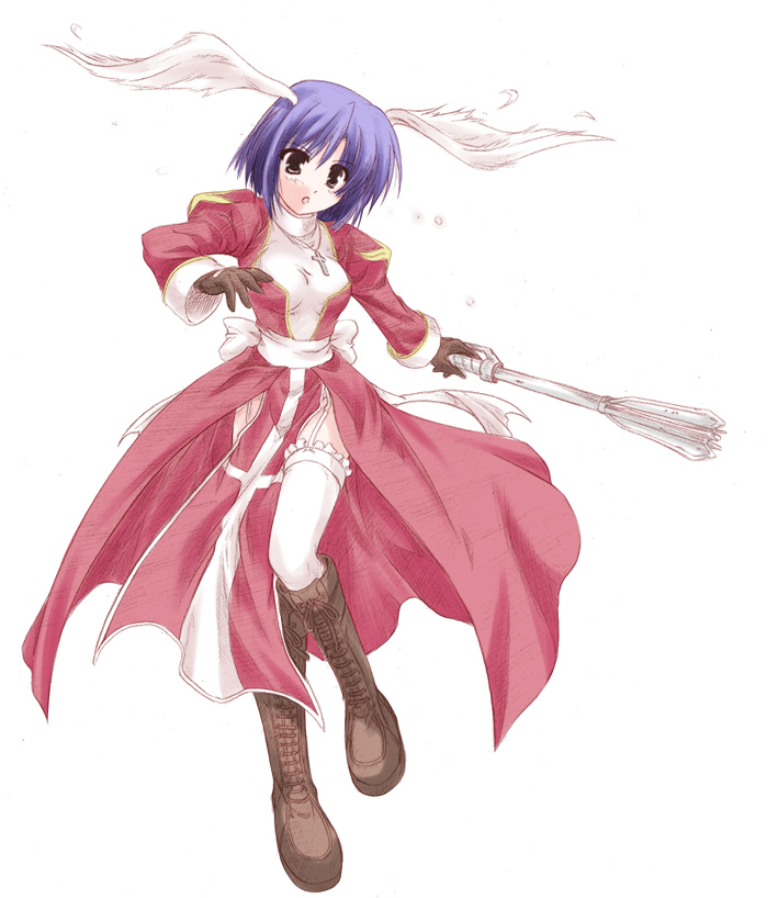ywaka, tsumura tokiko, busou renkin, bad id, bad pixiv id, 00s, 1girl, angry, blue sailor collar, bob cut, female focus, sailor collar, scar, scar on face, scar on nose, school uniform, serafuku, solo, valkyrie skirt, yellow eyes