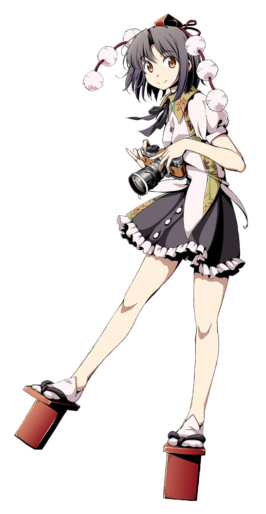 1girlblack hairbrown eyescamerafemale focusgetahatlooking at viewershort hairsmilesolotengu-getatokin hat