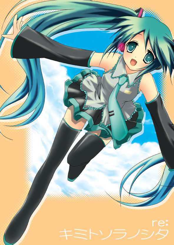 aqua eyesaqua hairdetached sleeveslong hairnecktieskirtsolothighhighstwintailsvery long hairzettai ryouiki