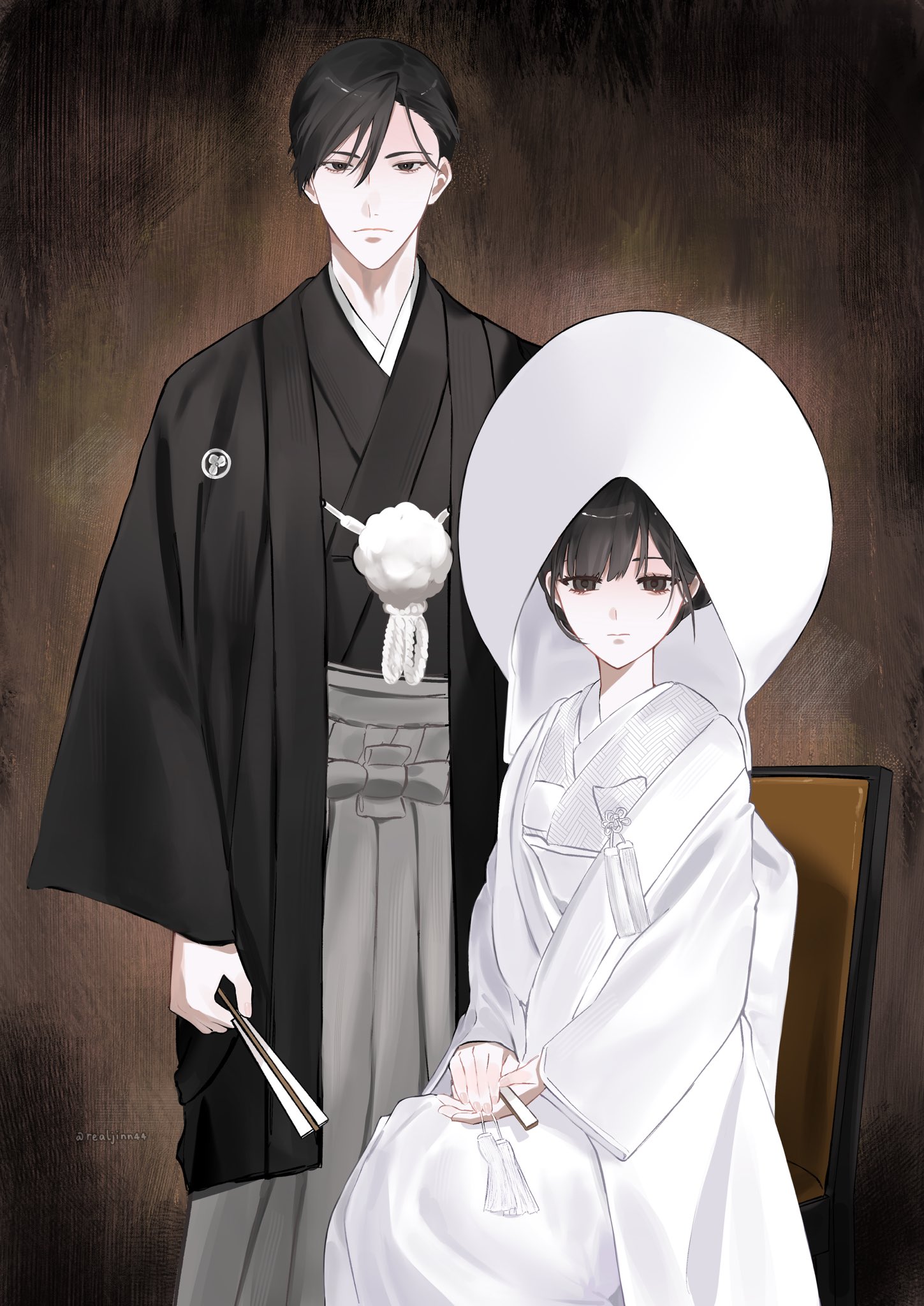 1boy1girlartist nameblack hairblack kimonojapanese clotheskimonorealjinn44robesignaturetwitter usernamewhite kimonowhite robe