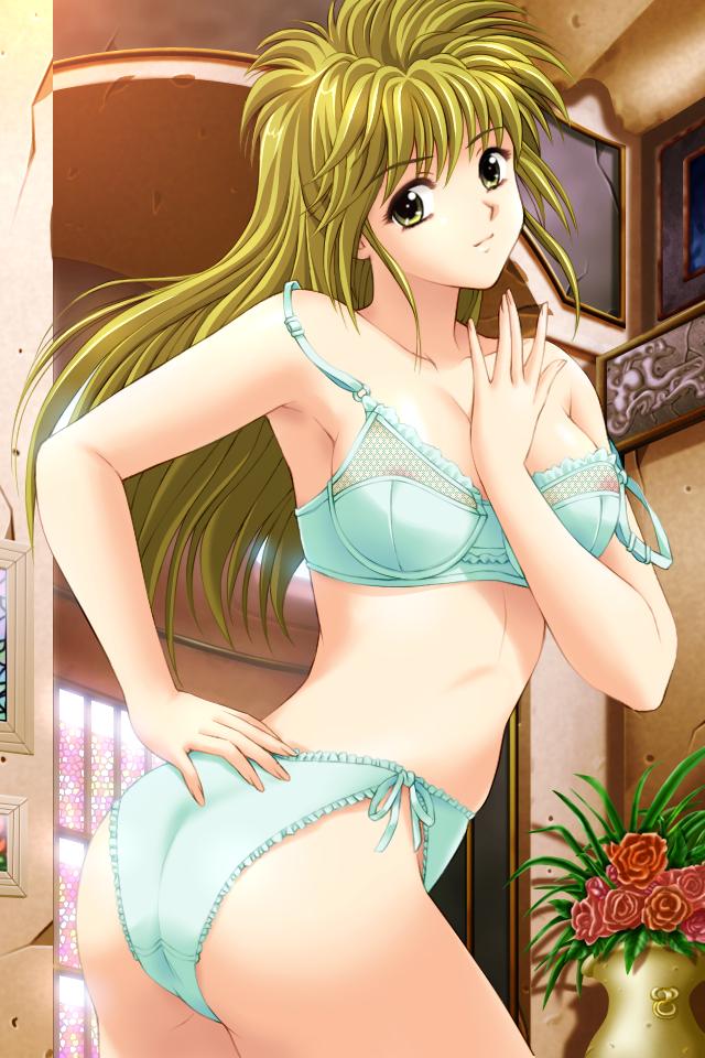 1girlassblonde hairbrafemale focuslingerielong hairpantiessolounderwearunderwear onlyyellow eyes