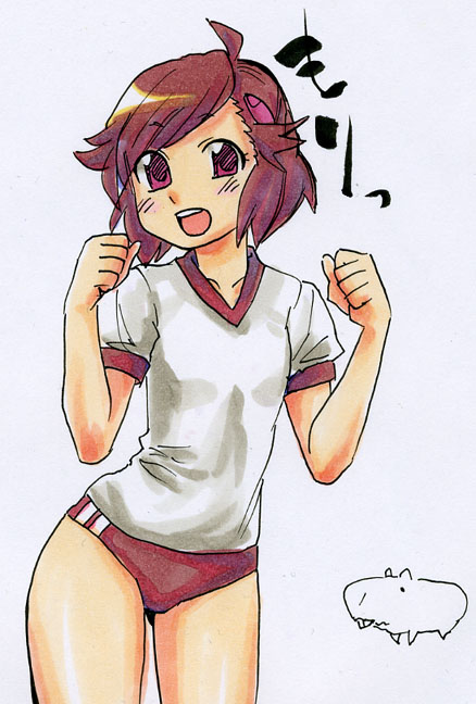 zen, minase akiko, sawatari makoto, kanon, 1girl, ^ ^, blush, closed eyes, fox, hair intakes, oekaki, peeking, scared, trembling