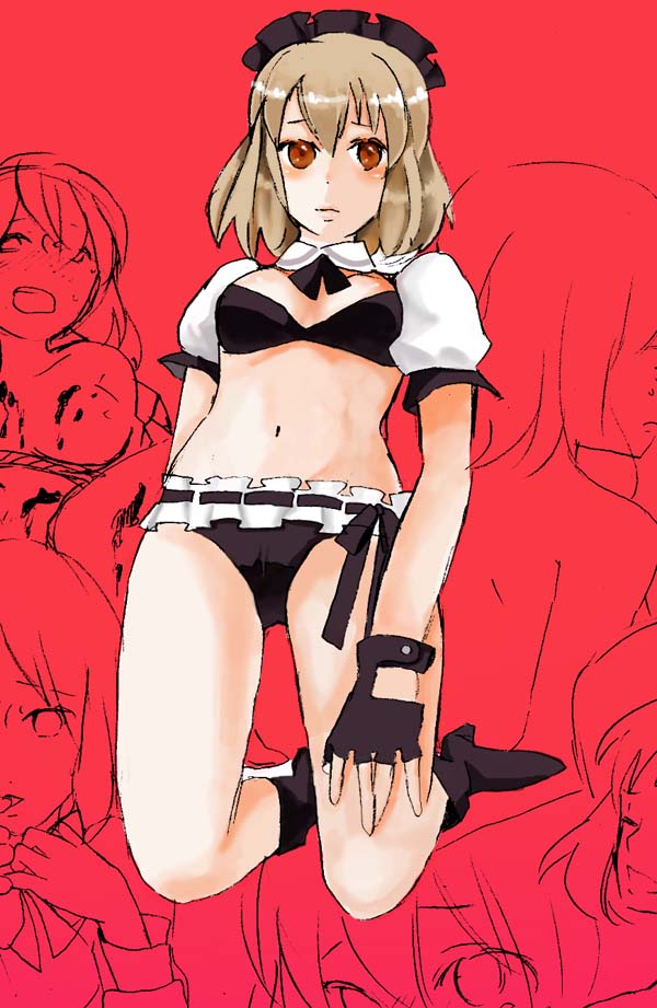 st+1, original, lowres, 3girls, aqua coat, boots, bottomless, coat, loli, multiple girls, plaid clothes, plaid skirt, pussy, rubber boots, sandals, simple background, skirt, thighhighs, uncensored, white background, yellow boots, zouri