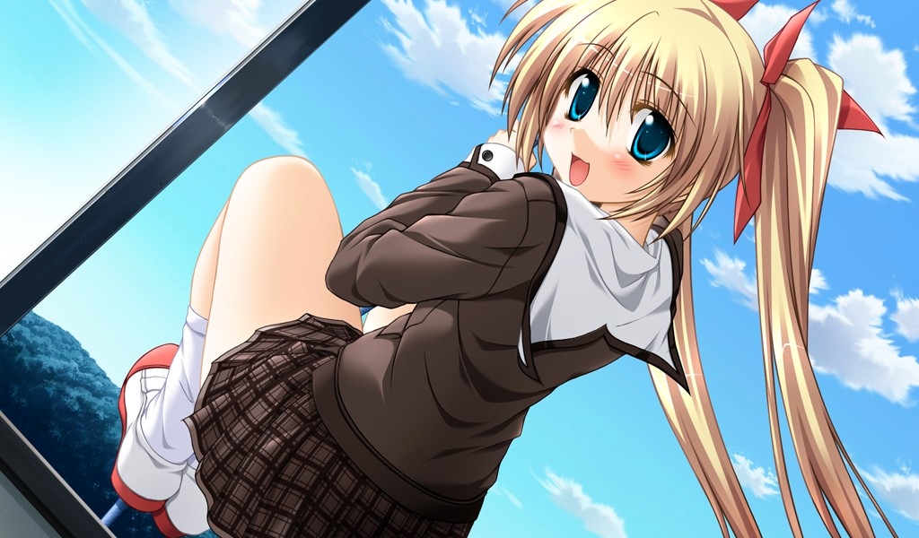 azuma kiyohiko, koiwai yotsuba, yotsubato!, absurdres, highres, scan, 1girl, child, dolphin, female focus, from below, one-piece swimsuit, red one-piece swimsuit, simple background, solo, swimsuit