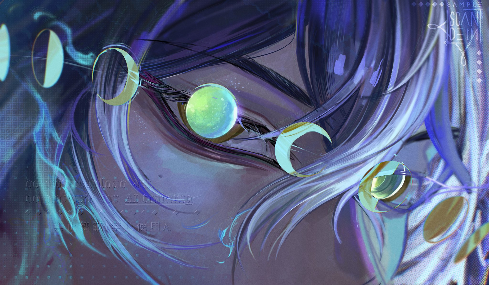 1boyartist nameblue hairclose-upeyelashesgradient hairhair between eyeslong hairmale focusmulticolored hairsolowhite hairyellow eyes