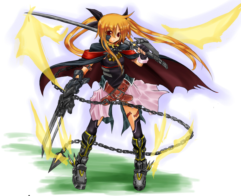 00s1girladapted costumealternate costumealternate weaponblonde hairbootscapechainclawsfemale focussoloswordthighhighsweapon