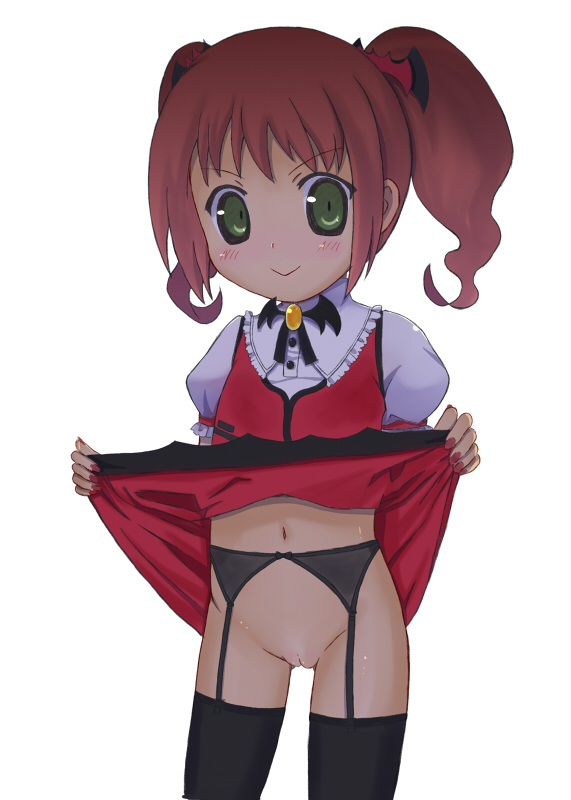 odaya, odayan, minamoto chizuru, kanokon, 00s, 1girl, animal ears, female focus, fox ears, kneehighs, panties, plaid clothes, plaid skirt, school uniform, serafuku, skirt, socks, solo, tail, underwear