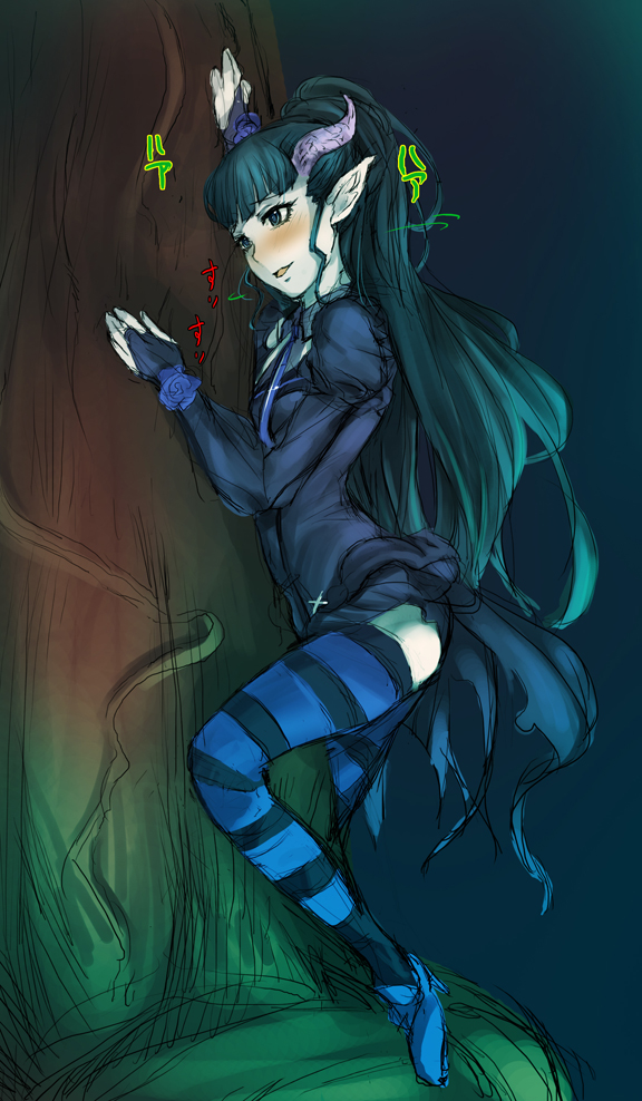 00s1girlblack hairblue eyesblushbridal gauntletsdemon girldressflat chestflowergothic lolitahigh heelshornshugkoonagololita fashionlong hairmini personminigirlnecktieopen mouthpale skinpenispointy earsroseshoessketchsolo focusstriped clothesstriped thighhighsthighhighsuncensoredvery long hair