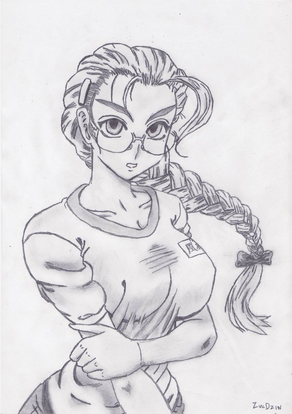 00s10s1girlbreastsfemale focusglassesgreyscalehair ornamenthaircliplarge breastsmolemole under eyemonochromeponytailsketchsolo