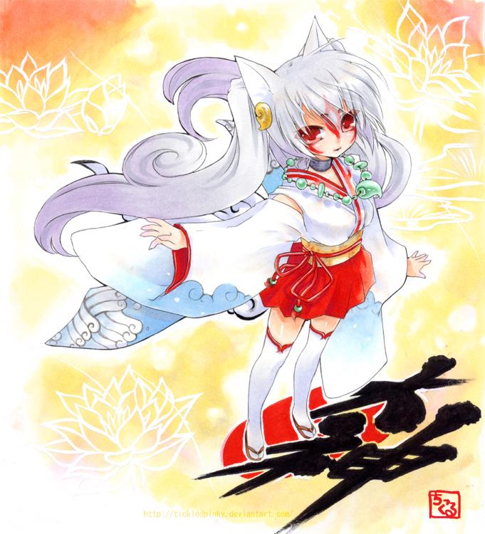 1girlanimal earsfemale focusjapanese clotheskimonolong hairopen m/personificationskirtsolothighhighstwintailswhite hairwolf ears