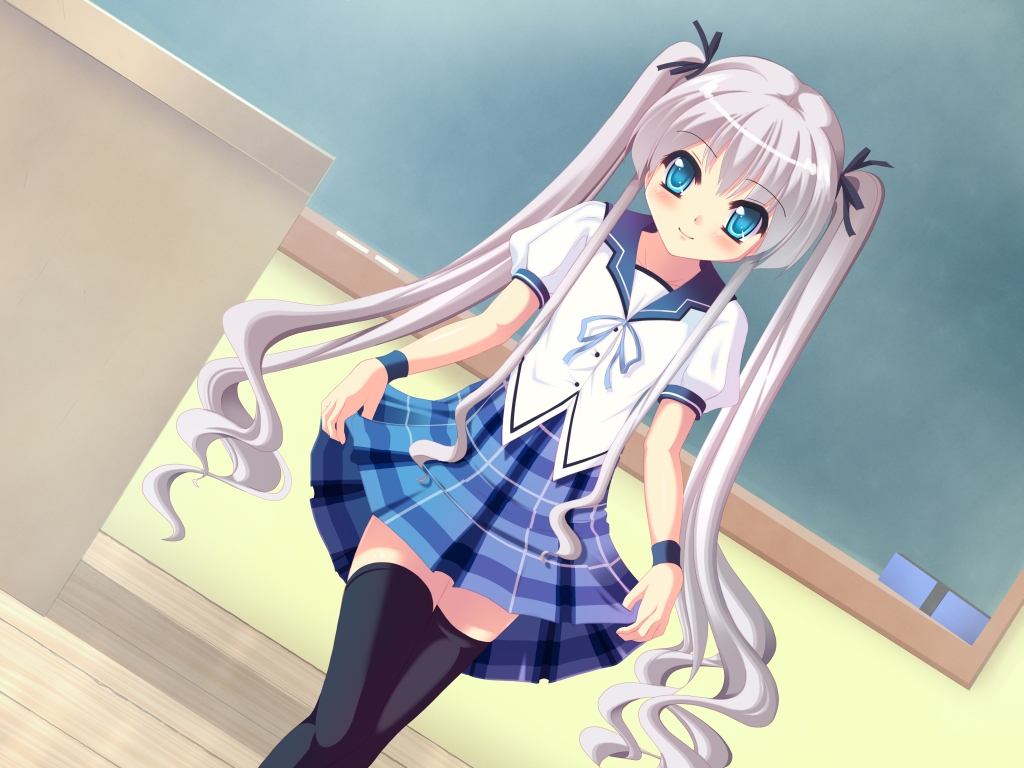blue eyescurtseypleated skirtschool uniformskirtskirt holdsolothighhighstwintailszettai ryouiki
