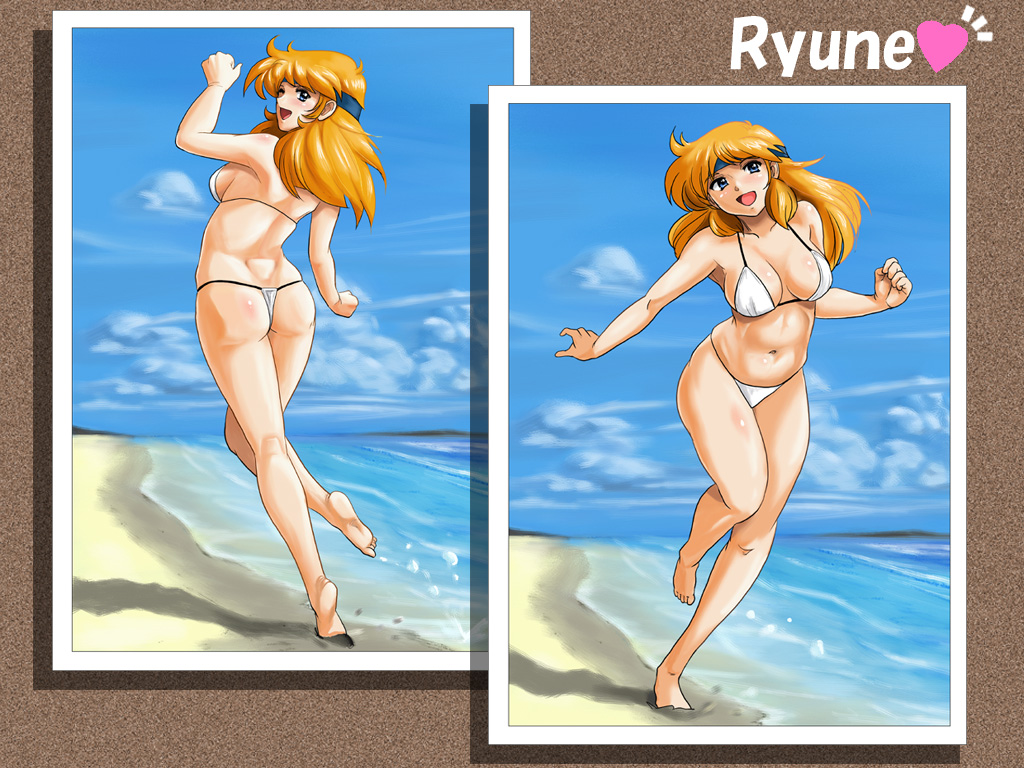 1girlassbarefootbikiniblonde hairbreastsbreasts apartdayfeetfemale focusheadbandsoloswimsuitthong bikini